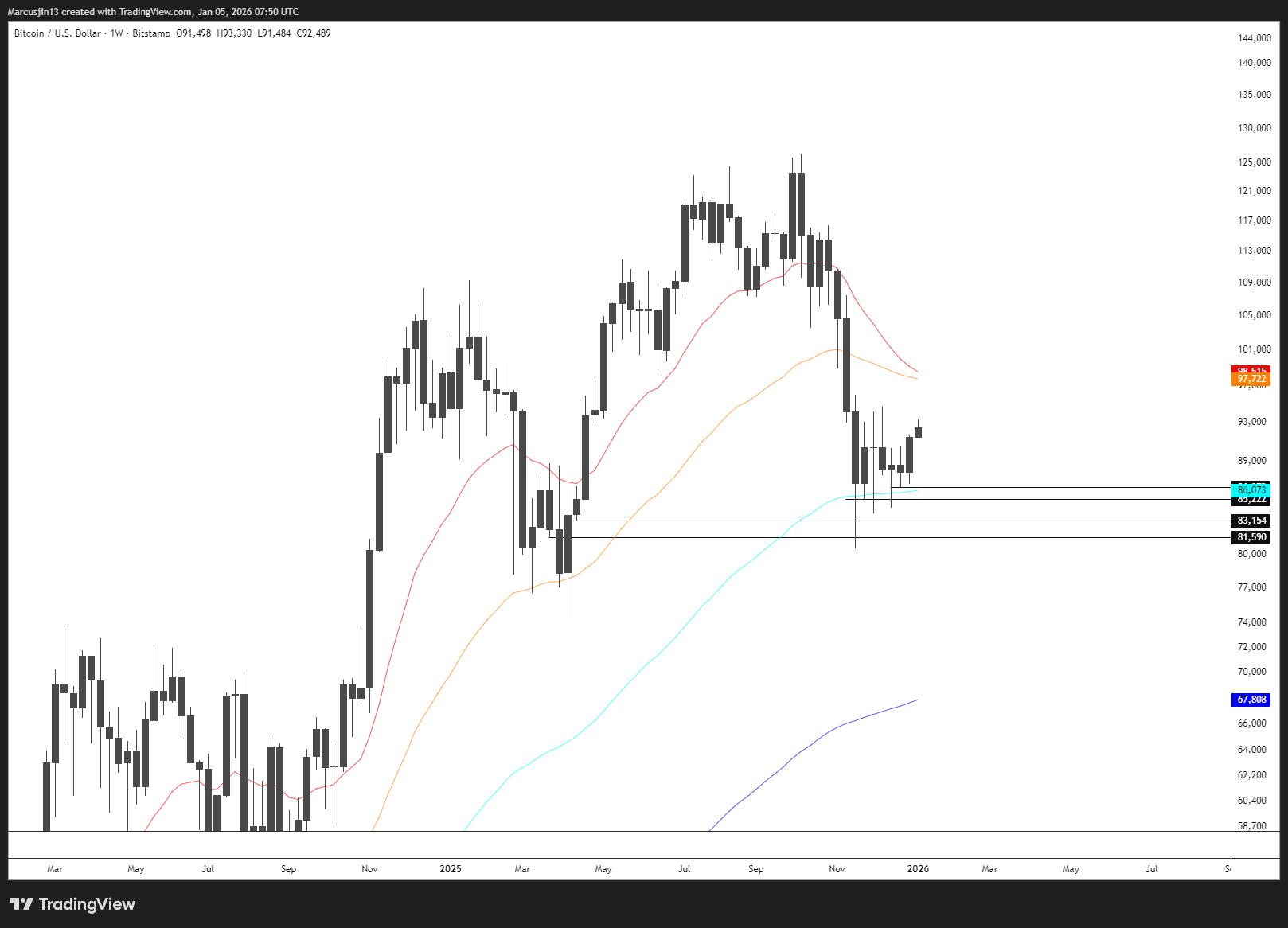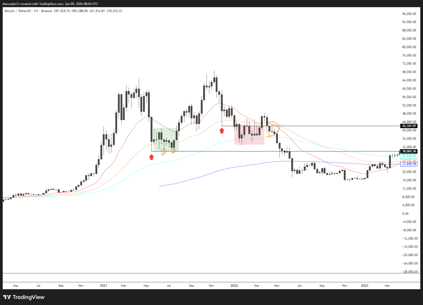 BTC 剛剛完成了一個很好的週線收盤,在 $91k 之上。更關鍵的是: